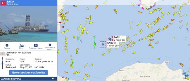 Буровое судно «Кануни» отправилось на глубоководное месторождение «Сакарья» в турецкой экономической зоне Черного моря. Оно расположено примерно в 100 милях от берега. На месторождении уже находится «Фатих», который месяц бурит скважину Amasra-1.