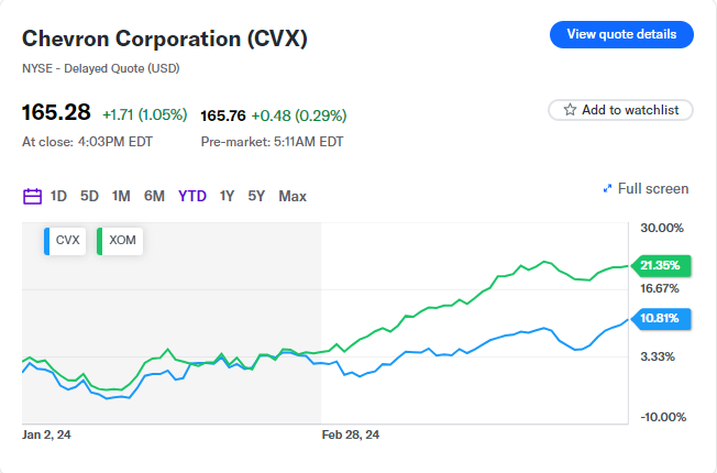Несмотря на то, что акции энергетических компаний превзошли в цене другие акции в прошлом квартале, Уолл-стрит ожидает снижения годовой прибыли таких гигантов, как Chevron (CVX) и ExxonMobil (XOM). Компании представят квартальные отчеты в эту пятницу. Причинами, отчасти, являются падение цен на газ и снижения маржи нефтепереработки в первые три месяца 2024 года.