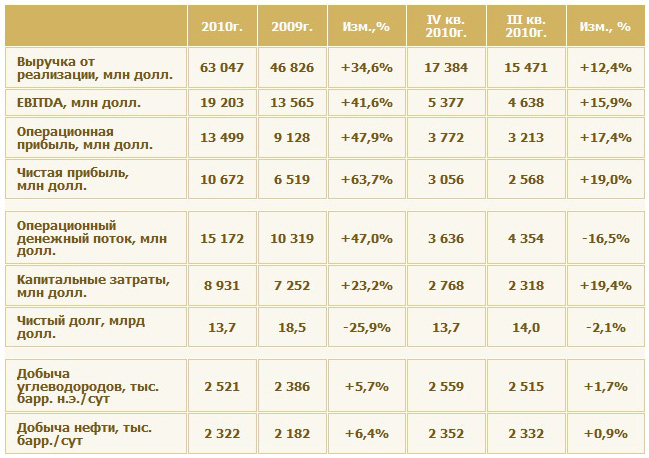 В 2010 г. «Роснефть» показала сильные финансовые и операционные результаты