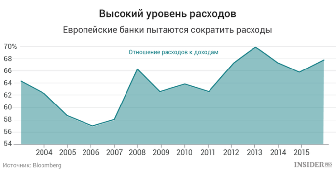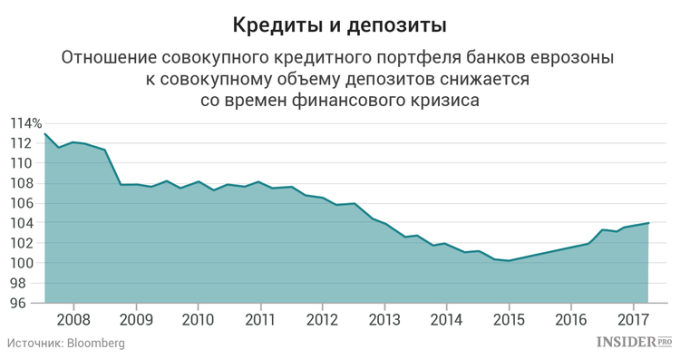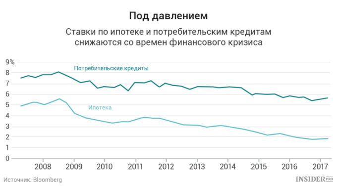 Однако объемы выручки не восстановилась. Тот факт, что Европейский центральный банк прекратил предлагать банкам дешевое финансирование, и рекордно низкие процентные ставки означают, что снизились и ставки, по которым банки могут предлагать клиентам новые кредиты.