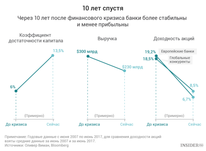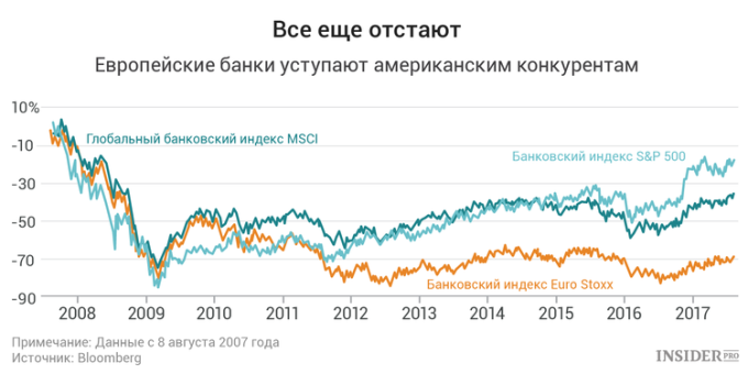 Для инвесторов в акции международных банков прошедшее десятилетие оказалось потерянным. Акции европейских банков и сейчас еще далеки от восстановления.