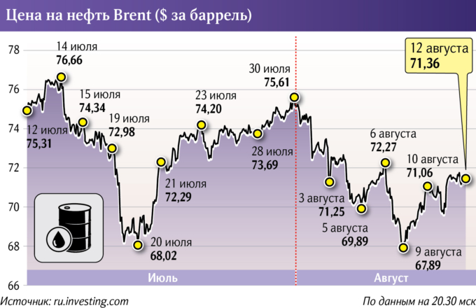 11 августа президент США Джо Байден, выступая в Белом доме, призвал ОПЕК отказаться от сокращения добычи нефти по мере восстановления мировой экономики, чтобы снизить цены на черное золото. В тот же день нефтяные котировки показали рост, октябрьские фьючерсы Brent в 16:00 мск торговались на уровне около $71,15 за баррель, а 12 августа в то же время — уже $71,20 за бочку, свидетельствуют данные торгов лондонской биржи ICE.