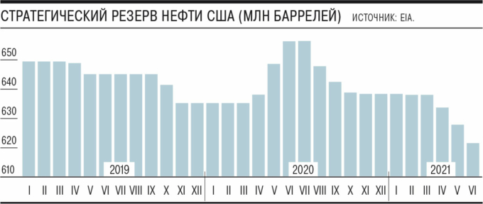 По оценкам Reuters, в течение лета китайские госкомпании сокращали размер накопленных избыточных коммерческих запасов нефти, а возможно, уже происходили и продажи из стратегических резервов. Расчет, основанный на оценке разницы между объемом импортированной и добытой в Китае нефти и объемом ее переработки в стране, показал, что в мае поставки из запасов могли составлять 589 тыс. баррелей в сутки (б/с), в июне — 980 тыс. б/с, в июле — 223,7 тыс. б/с. Аналитики Reuters предполагают, что избыток коммерческих запасов теперь практически снят и в дело вступил стратегический резерв. Власти Китая при этом явно сдерживают импорт нефти (с помощью квот для независимых НПЗ) — по официальной статистике, в январе—августе он упал на 5,7%, несмотря на постковидное восстановление экономики.