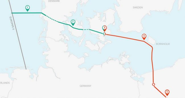 «Балтийский газопровод» пройдет из Северного моря, от газопровода Europipe II, через Данию и Балтийское море в Польшу. Сухопутный участок в Дании занимает 210 километров.