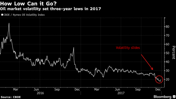 Несмотря на эти риски, в последние недели волатильность упала до самого низкого уровня за три года. Поскольку ОПЕК четко обозначила свои планы на 2018 год, банки, в том числе Societe Generale SA, ожидают дальнейшего снижения волатильности в следующем году. «Решение ОПЕК активно управлять рынком будет сдерживать волатильность», — пишет в начале этого месяца Amrita Sen, главный нефтяной аналитик из Energy Aspects Ltd.