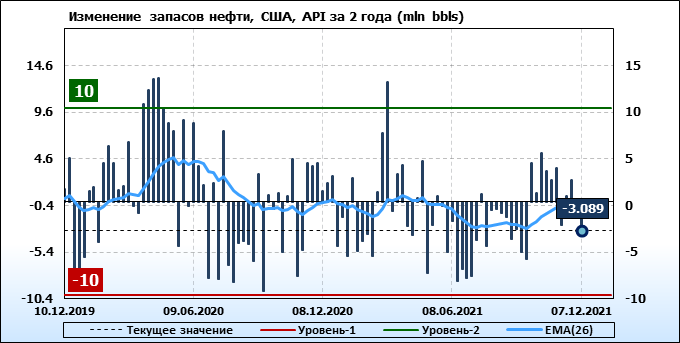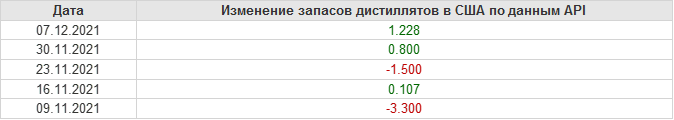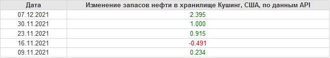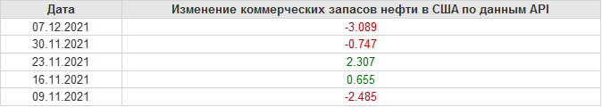 API. Изменение запасов нефти в США на 7 декабря 2021