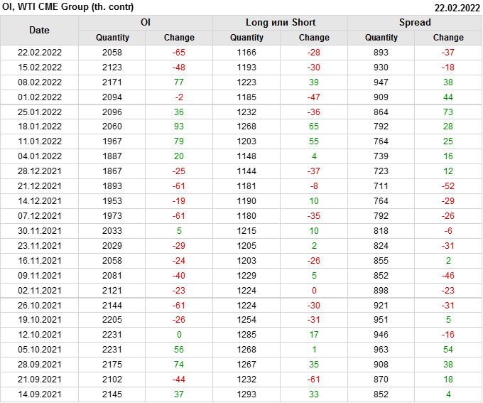 WTI. Открытый интерес на 26 февраля 2022