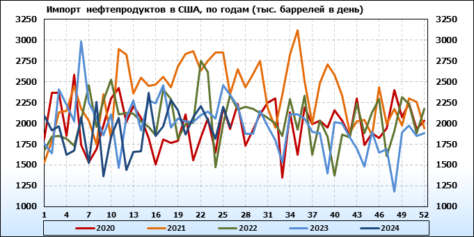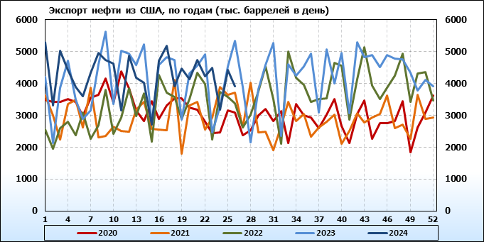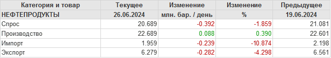 EIA. Добыча, импорт, экспорт нефти в США на 26 июня 2024