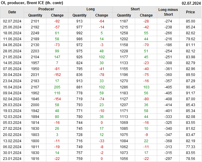 За неделю разница между длинными и короткими позициями производителей увеличилась на 36.1 тыс. контрактов.