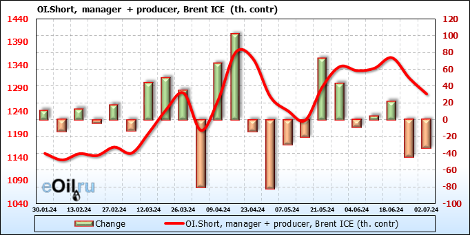 Разница между длинными и короткими позициями производителей и управляющих сократилась на 1.2 тыс. контрактов.