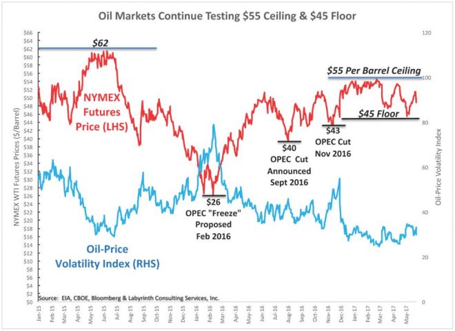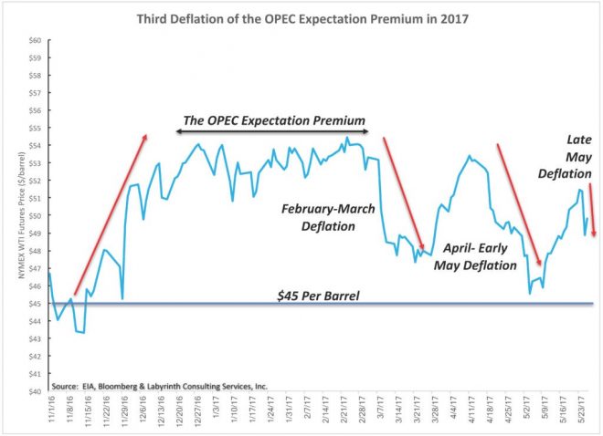 В июне 2016 года рынки разуверились в том, что ОПЕК сможет разрешить ситуацию, и цены упали с $51 за баррель до $40 за баррель. Тогда ОПЕК опубликовала сведения о готовящемся проекте соглашения об ограничении объемов добычи нефти, что остановило падение цен. Затем ОПЕК предприняла еще одно решение для остановки падения цен — в ноябре, после того, как цены опустились до $43, было заключено соглашение об ограничении объемов добычи нефти.