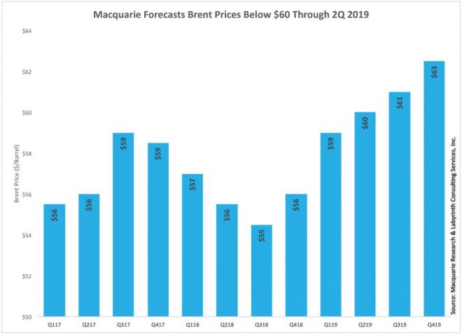 Недавнее исследование Macquarie Research также подтверждает мнение о том, что цена на Brent не будет превышать $60 до второй четверти 2019 года.