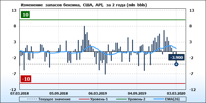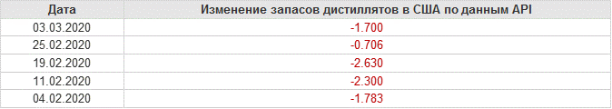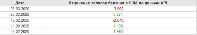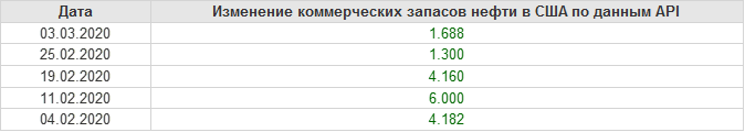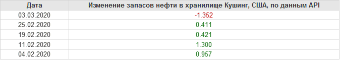 API. Изменение запасов нефти в США на 03 марта 2020