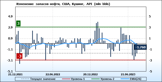 Запасы в хранилище Кушинг по данным института API упали на 1.76 млн. баррелей.