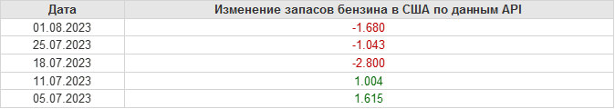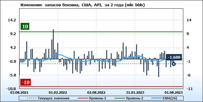 Запасы бензина в США по данным института API упали на 1.68 млн. баррелей.