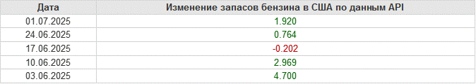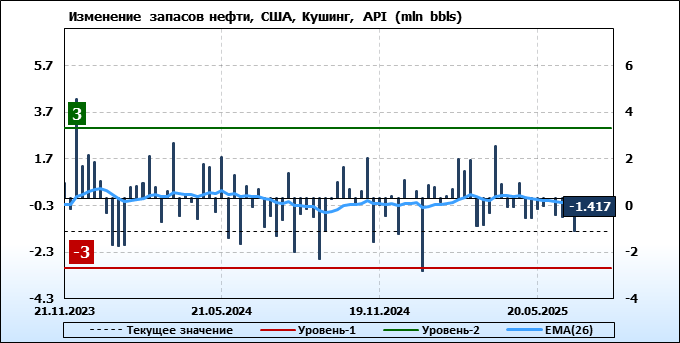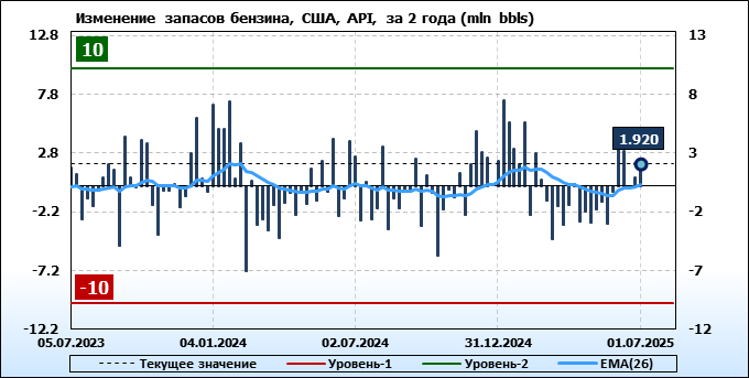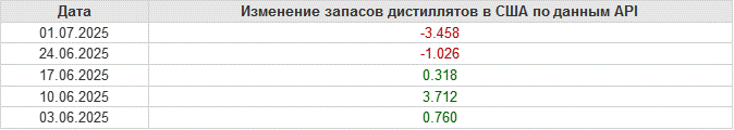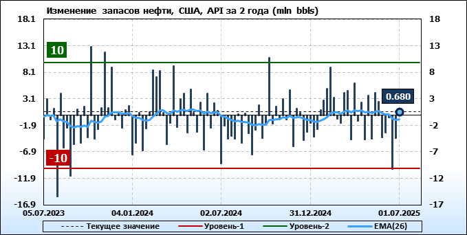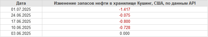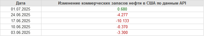 API. Изменение запасов нефти в США на 1 июля 2025