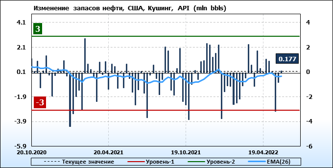 Запасы в хранилище Кушинг по данным института API выросли на 0.177 млн. баррелей.