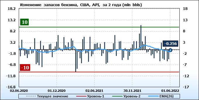 Запасы бензина в США по данным института API упали на 0.256 млн. баррелей.