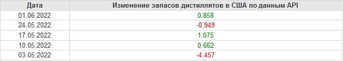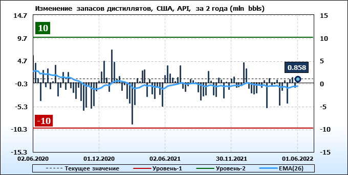 Запасы дистиллятов в США по данным института API выросли на 0.858 млн. баррелей.