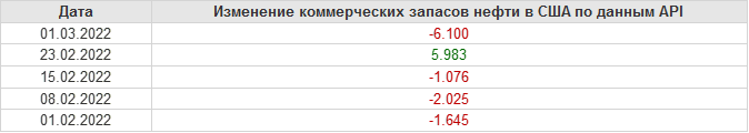 Коммерческие запасы нефти в США по данным института API упали на 6.1 млн. баррелей, при прогнозе +2.796 млн. баррелей.