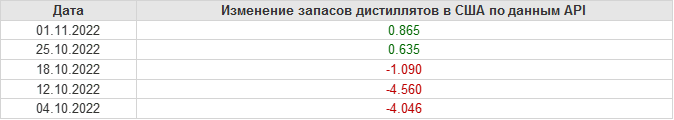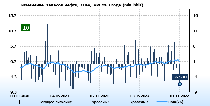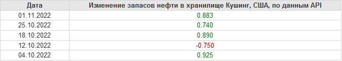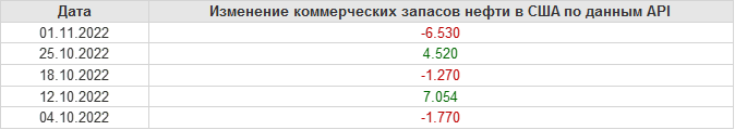 API. Изменение запасов нефти в США на 1 ноября 2022
