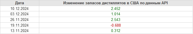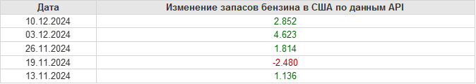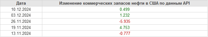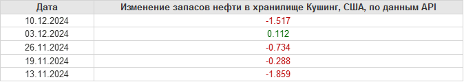 API. Изменение запасов нефти в США на 10 декабря 2024