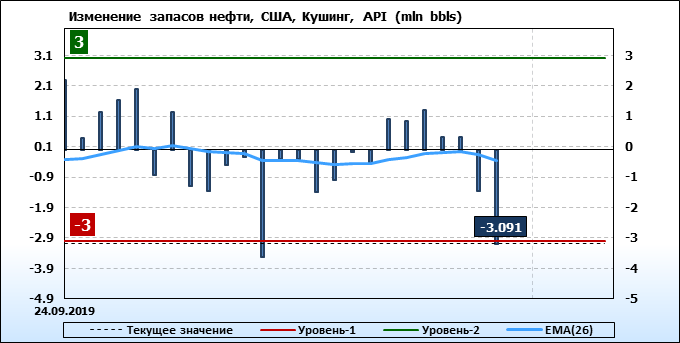 Запасы в хранилище Кушинг по данным института API упали на -3.091 млн. баррелей.