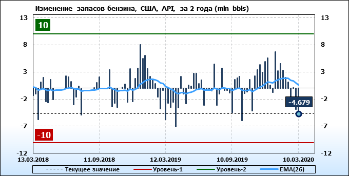 Запасы бензина в США по данным института API упали на -4.679 млн. баррелей.