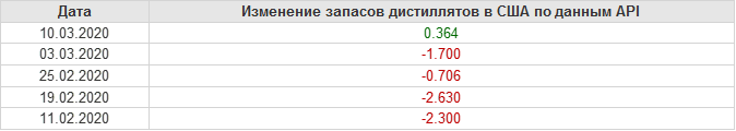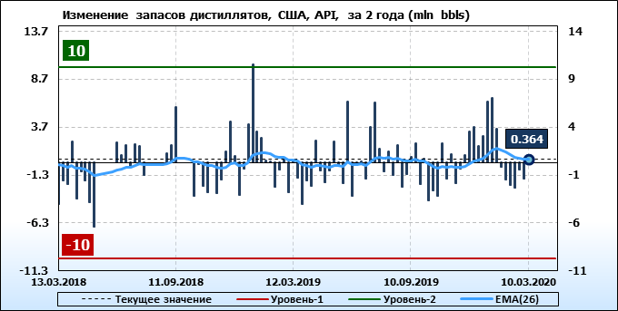Запасы дистиллятов в США по данным института API выросли на 0.364 млн. баррелей.