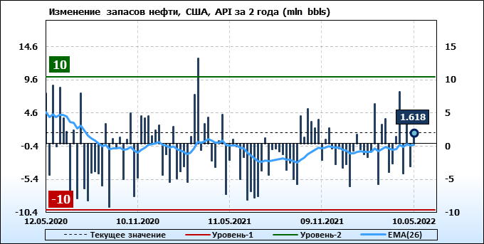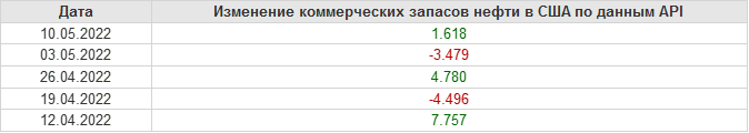 Коммерческие запасы нефти в США по данным института API выросли на 1.618 млн. баррелей, при прогнозе -1.2 млн. баррелей.
