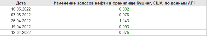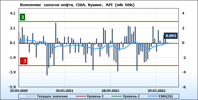 Запасы в хранилище Кушинг по данным института API выросли на 0.092 млн. баррелей.