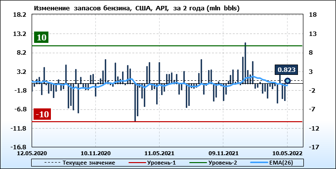 Запасы бензина в США по данным института API выросли на 0.823 млн. баррелей.