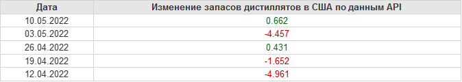Запасы дистиллятов в США по данным института API выросли на 0.662 млн. баррелей.
