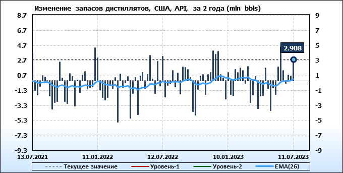 Запасы дистиллятов в США по данным института API выросли на 2.908 млн. баррелей.