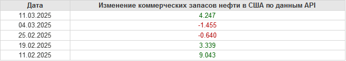 Коммерческие запасы нефти в США по данным института API выросли на 4.247 млн. баррелей, при прогнозе +2.1 млн. баррелей.