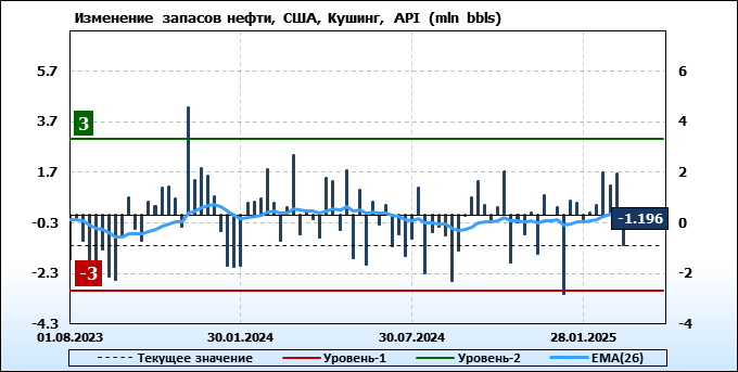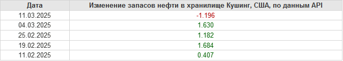 Запасы в хранилище Кушинг по данным института API упали на 1.196 млн. баррелей.
