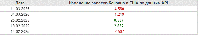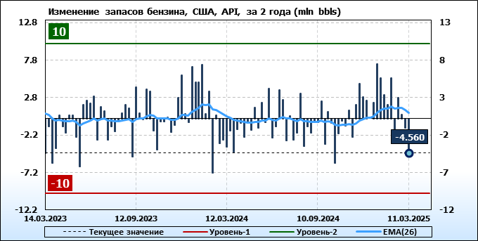 Запасы бензина в США по данным института API упали на 4.56 млн. баррелей.