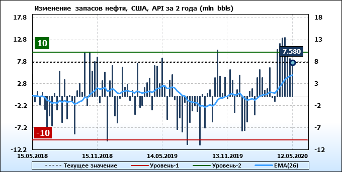 Коммерческие запасы нефти в США по данным института API выросли на 7.58 млн. баррелей.
