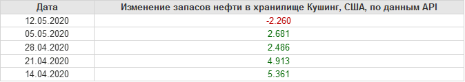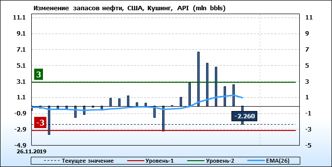 Запасы в хранилище Кушинг по данным института API упали на -2.26 млн. баррелей.