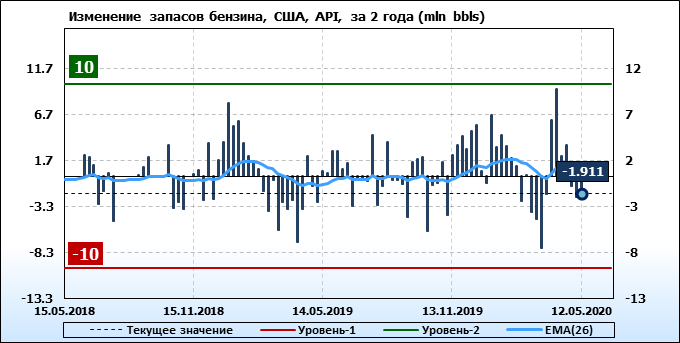 Запасы бензина в США по данным института API упали на -1.911 млн. баррелей.