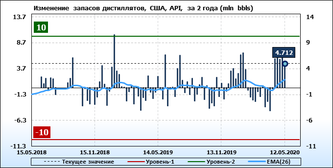 Запасы дистиллятов в США по данным института API выросли на 4.712 млн. баррелей.