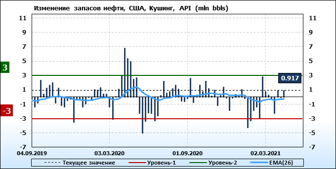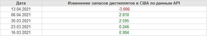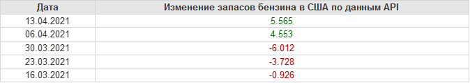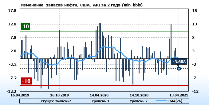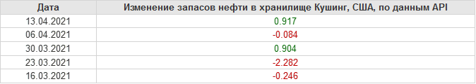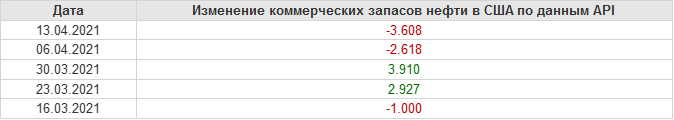 API. Изменение запасов нефти в США на 13 апреля 2021