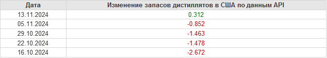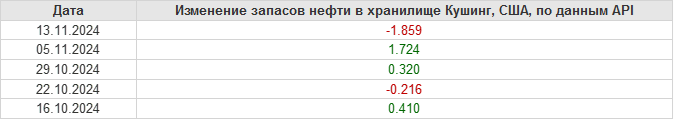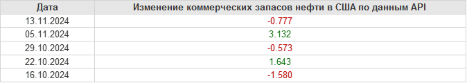 API. Изменение запасов нефти в США на 13 ноября 2024