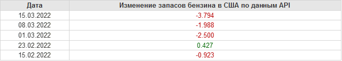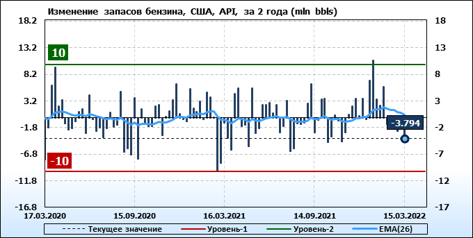 Запасы бензина в США по данным института API упали на 3.794 млн. баррелей.
