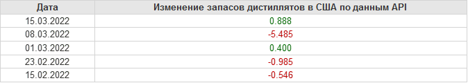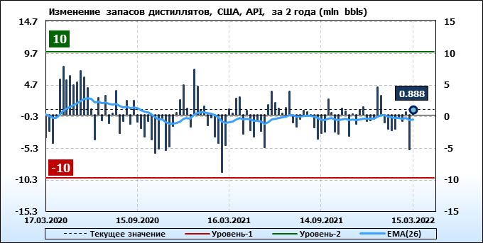 Запасы дистиллятов в США по данным института API выросли на 0.888 млн. баррелей.