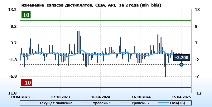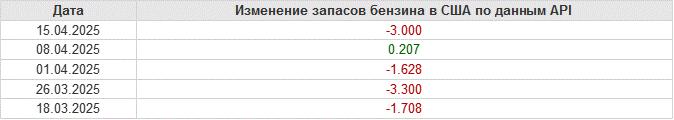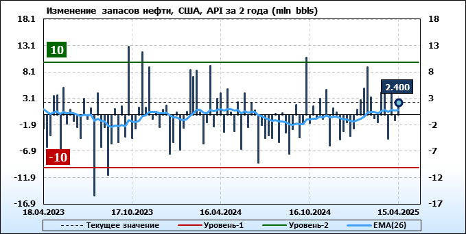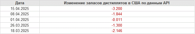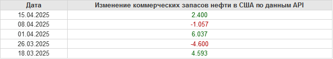 API. Изменение запасов нефти в США на 15 апреля 2025