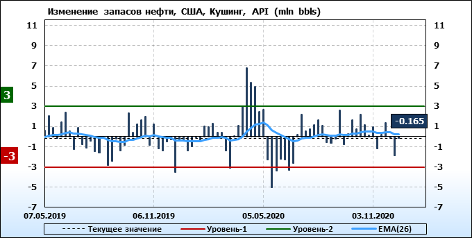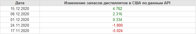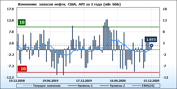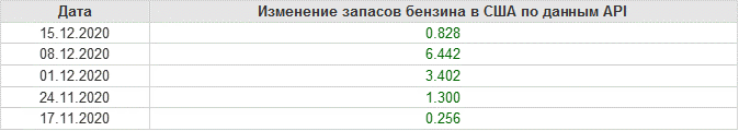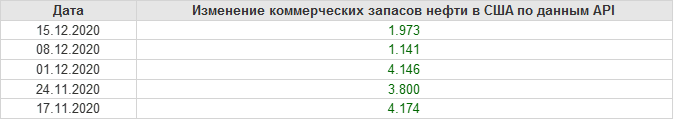 API. Изменение запасов нефти в США на 15 декабря 2020