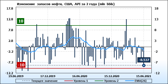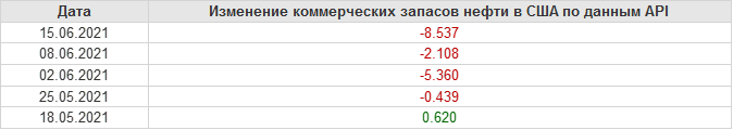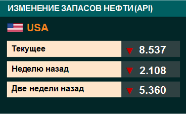 Коммерческие запасы нефти в США по данным института API упали на 8.537 млн. баррелей, при прогнозе -3.000 млн. баррелей.