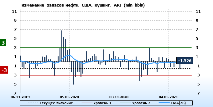 Запасы в хранилище Кушинг по данным института API упали на 1.526 млн. баррелей.