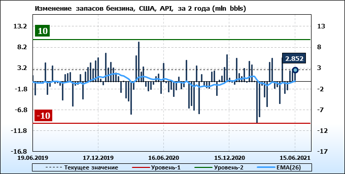 Запасы бензина в США по данным института API выросли на 2.852 млн. баррелей.